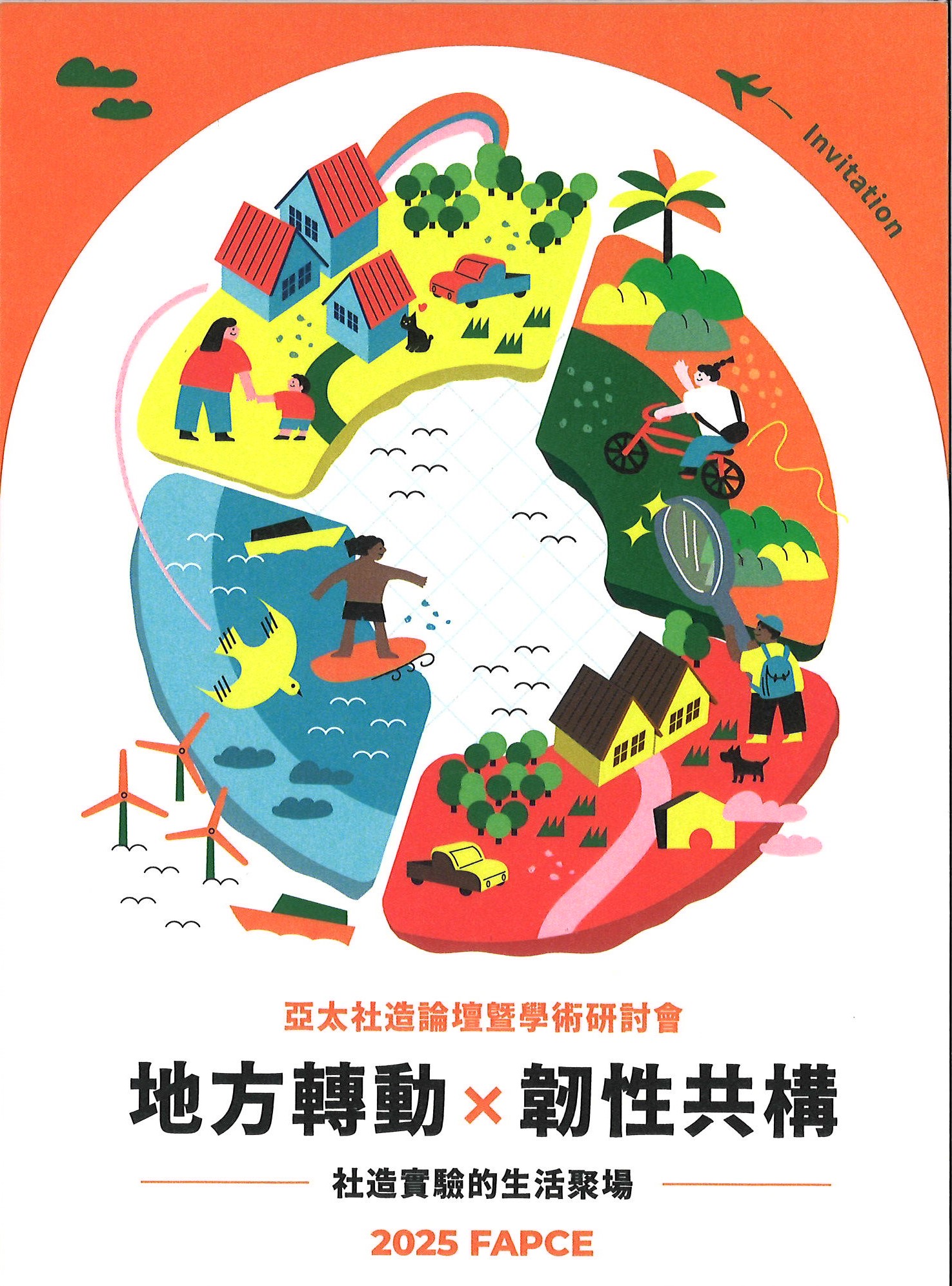 當前世界正處於多重轉型交錯的節點,全球化的解構與地方治理的重組,讓「在地」不再只是文化認同的據點,更是面對氣候變遷、社會高齡化、青年出走與能源轉型等問題的創新解方。台灣推動社造的三十年多年來,已經累積豐富的社區經驗、文化多樣性與公民實驗潛力。我們期望能從台灣的社區營造成果出發,結合亞太各地的行動知識,我們亟需一個共同學習與申聯的平台,為未來社會描繪出「從地方出發」的治理藍圖。