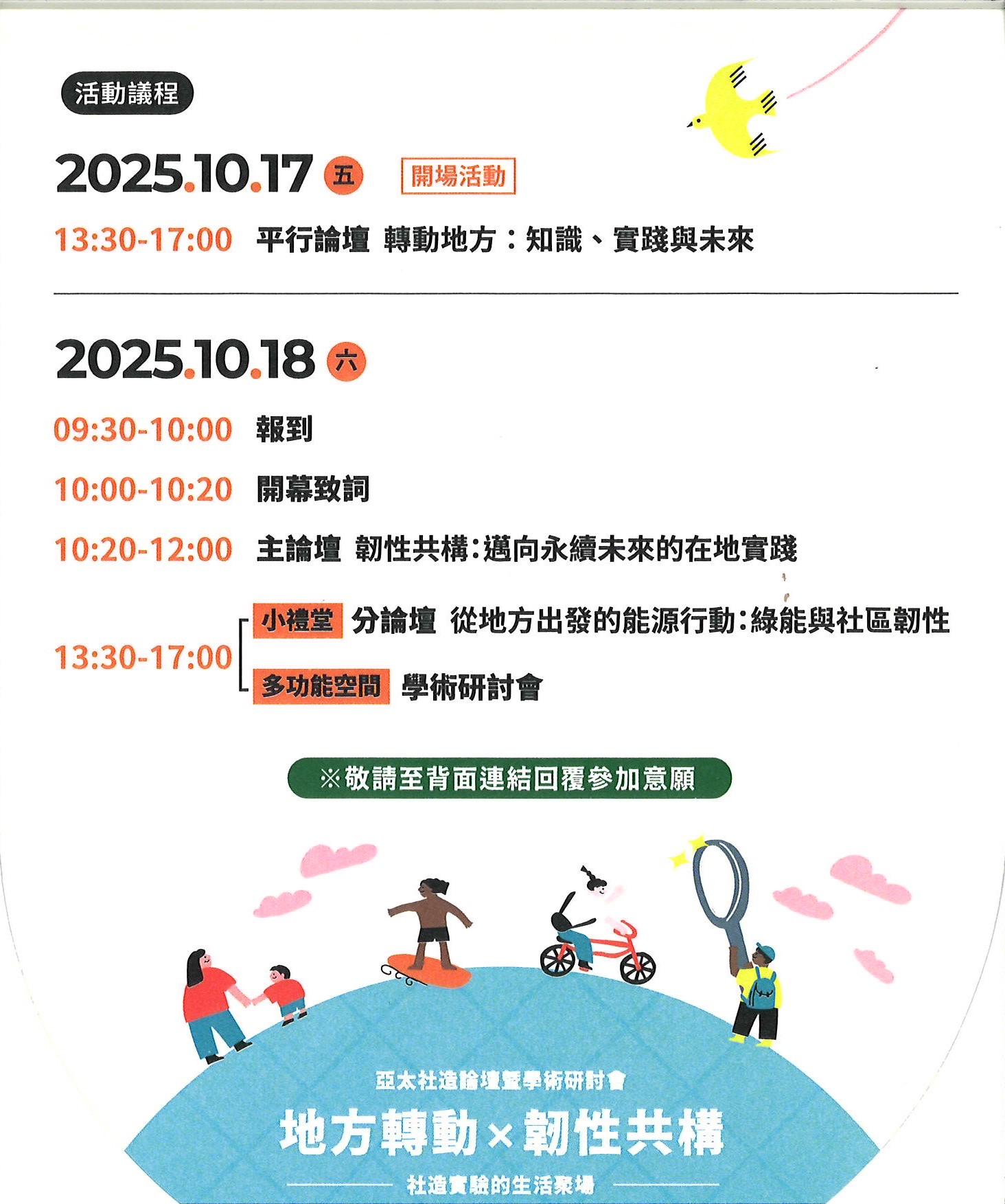 台灣社區營造學會於114年10月18日辦理「2025年亞太社造論壇學術研討會」