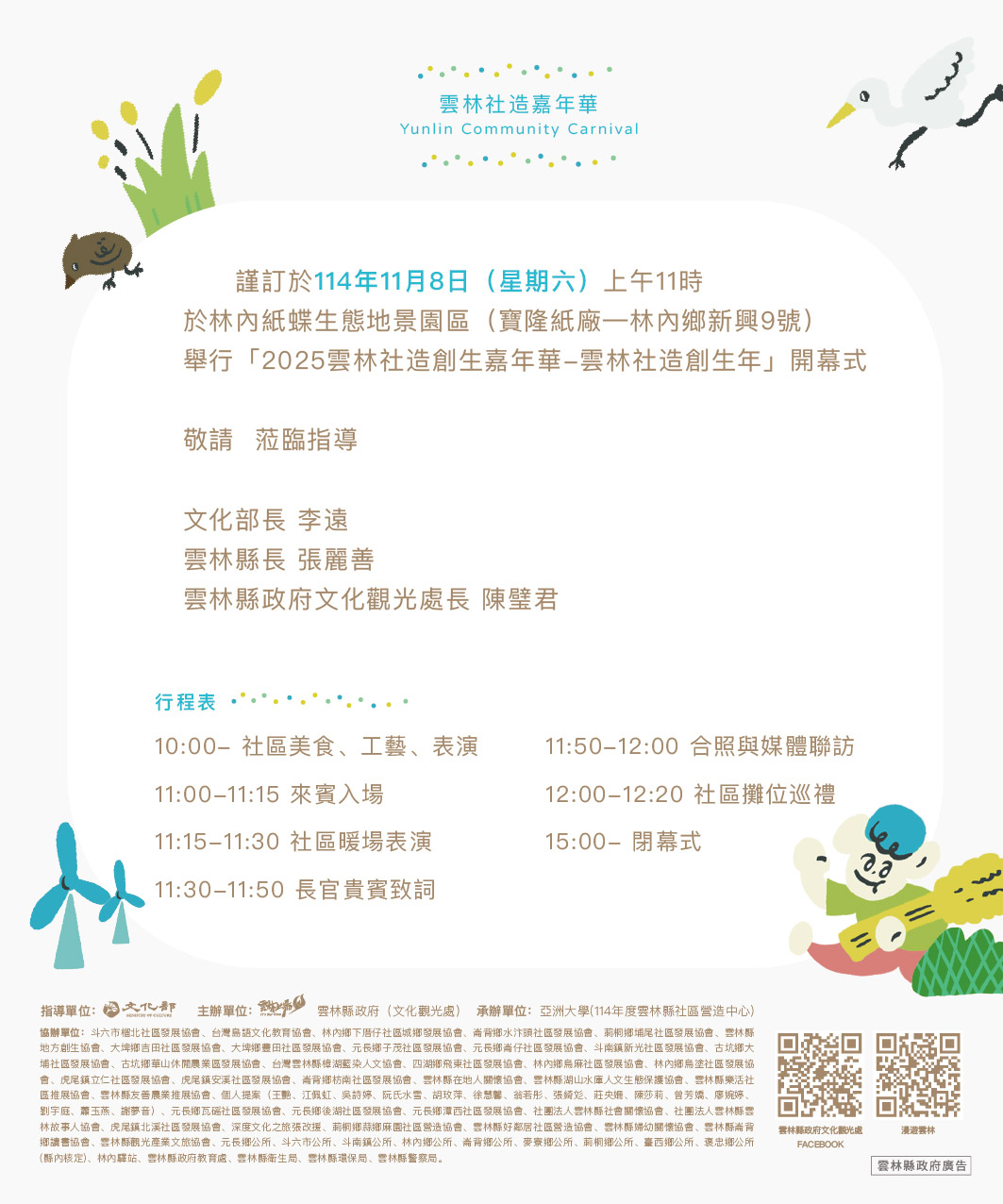 「2025雲林社造創生嘉年華」辦理於11月8日(六)